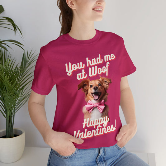 You Had Me at Woof - Happy Valentines - Unisex Jersey Short Sleeve Tee